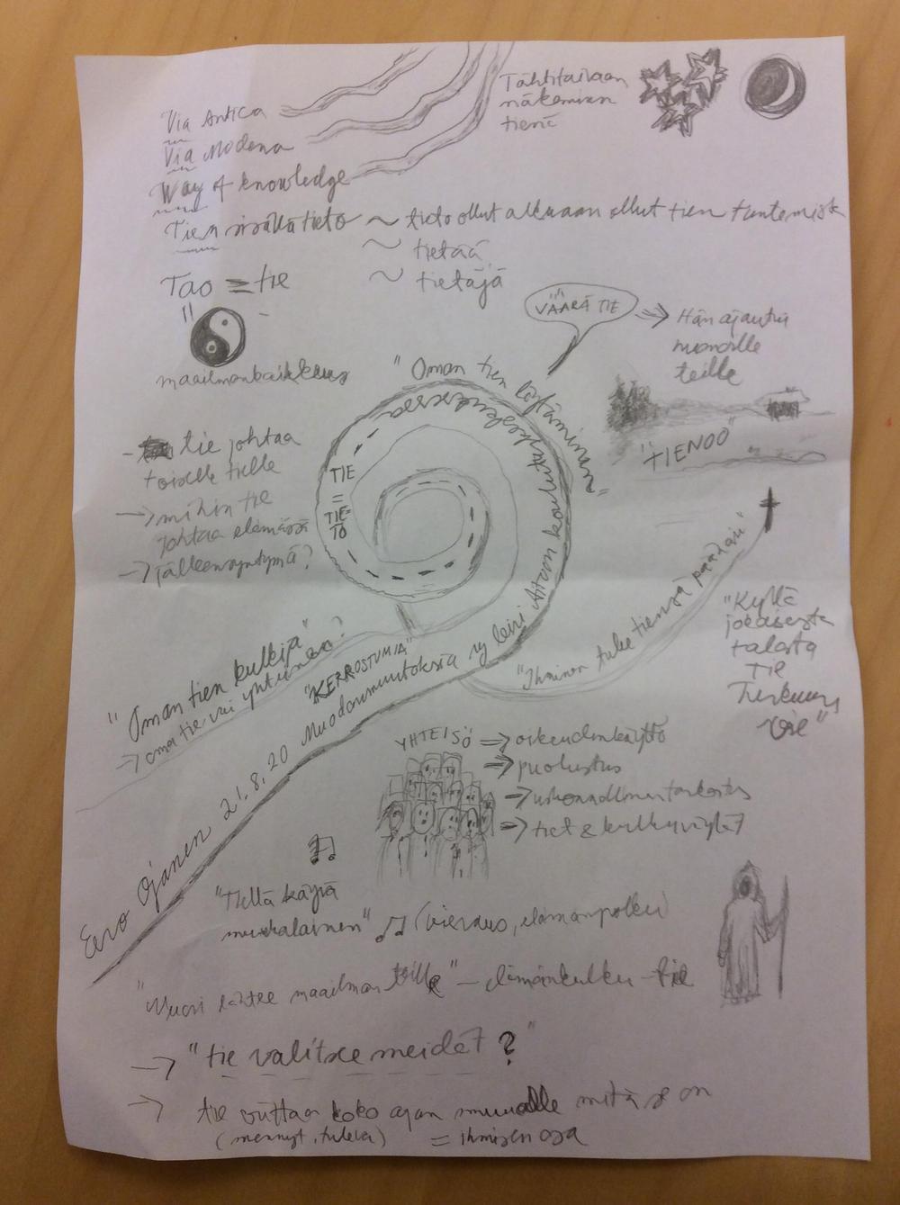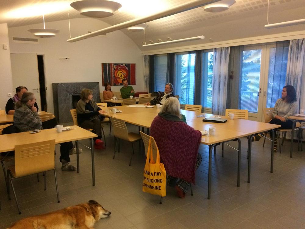 Järjestimme Kerrostuma-jatkoleirin tuttuun tapaan Aitoon koulutuskeskuksen Lyylintuvalla. Kävimme läpi kerrostumasuunnitelmia ja mahdollisia teosten sijoituspaikkoja. Nautimme maa-artisokka -keittoa, uunijuureksia ja puolukka-keksi-kerrostuma -jälkiruokaa (kiitos Pia). Emme saaneet arkeologia luennoimaan paikan päälle, sillä samaan aikaan oli Pirkanmaan Alta webinaari, ja kaikki alueen arkeologit olivat siellä. Osallistuimme leiriltä webinaarin osioihin "Kipot ja kielet" sekä "Villiönsuvannon" asuinpaikasta kertoviin luentoihin. Sovimme pitävämme vielä yhden leirin kevätpuolella. Alla Tiina Poutasen leirialustus, joka viritti vilkkaan keskustelun.
