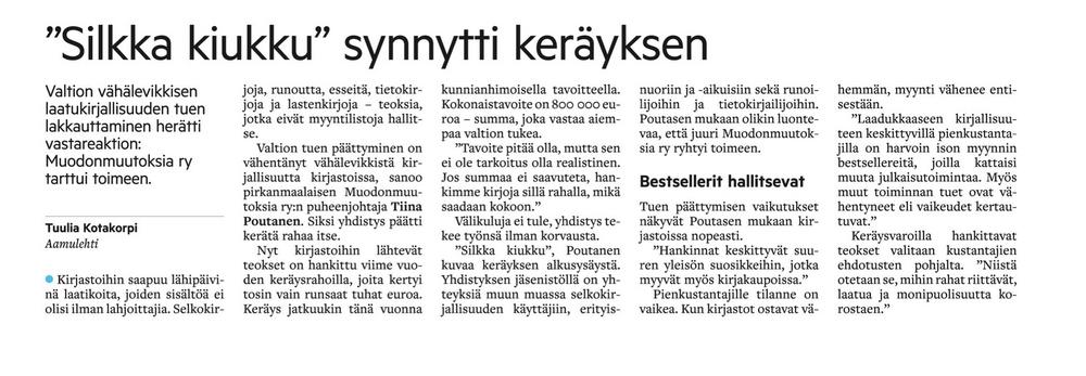 Maamme hallitus lakkautti vähälevikkisen laatukirjallisuuden tuen vuoden 2023 lopulla. Kerätään se takaisin euro kerrallaan, kokonaistavoitteena on huimat 800 000 euroa.