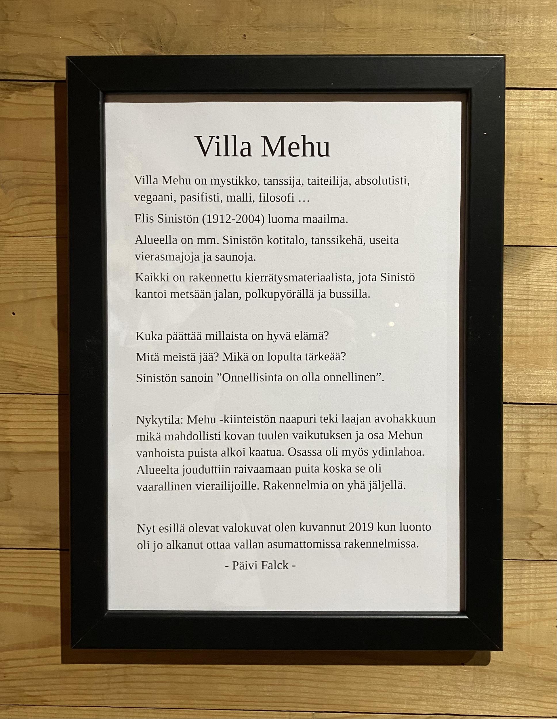 Residenssiin kuuluu pieni asunto Museotie 3 talon päädyssä ja hyvänkokoinen työskentelytila samassa rakennuksessa. Residenssi on taiteilijalle tai tieteentekijälle ilmainen, mutta siihen sisältyy velvoite järjestää paikallisille jokin pieni tapahtuma: työpaja, luento, työskentelyn esittelytilaisuus tms. Kuvia residenssistä ja esimerkkejä taiteilijoiden järjestämistä tapahtumista.